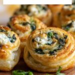 These Spinach Puffs are delightful, flaky pastries filled with a flavorful mix of spinach, garlic, herbs, and a trio of creamy cheeses. Perfect as an appetizer or snack, they feature a golden puff pastry crust baked to perfection, offering a savory and satisfying bite that’s both elegant and easy to prepare.