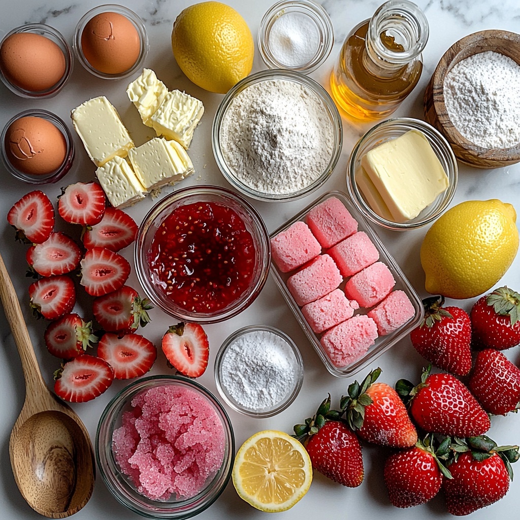 The magic of this Strawberry Lemonade Cake Layers Recipe comes from a few simple but thoughtfully chosen ingredients. Every component plays its part, from the velvety cream cheese and butter giving richness to the cake, to the fresh strawberries and lemon that light up the flavor and color in a way no artificial flavor can match.