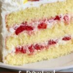 - Assemble Cake Layers: Place the first cake layer on a cake plate. Optionally, brush it lightly with the cooled lemon syrup for added moisture and flavor. Spread a generous layer of lemon frosting on top and layer with thinly sliced strawberries. Repeat this process with the second layer and then the final third layer.