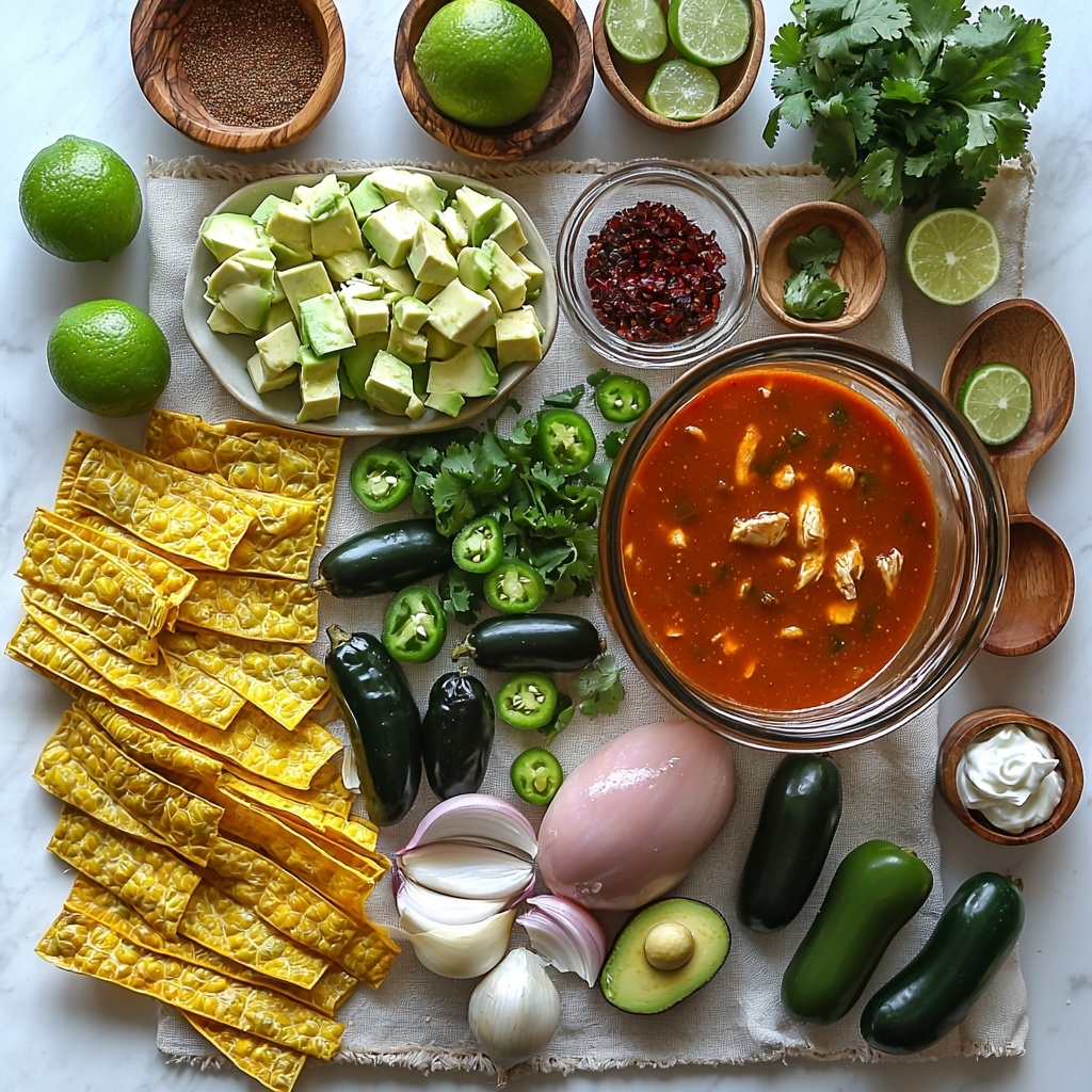• Optional toppings: Lime wedges, tortilla chip strips or freshly fried tortilla strips, diced green onions, chopped fresh cilantro, diced avocado, crumbled queso fresco, and sour cream, all for personalized finishing touches.
