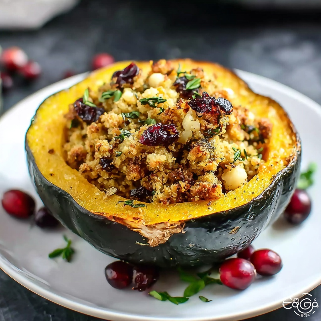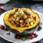 This Turkey and Cranberry Stuffed Acorn Squash is a flavorful and nutritious fall-inspired dish featuring tender roasted acorn squash halves filled with a savory mixture of lean ground turkey, sweet dried cranberries, aromatic herbs, and optional Parmesan cheese. Perfect for a wholesome dinner that’s both comforting and elegant.