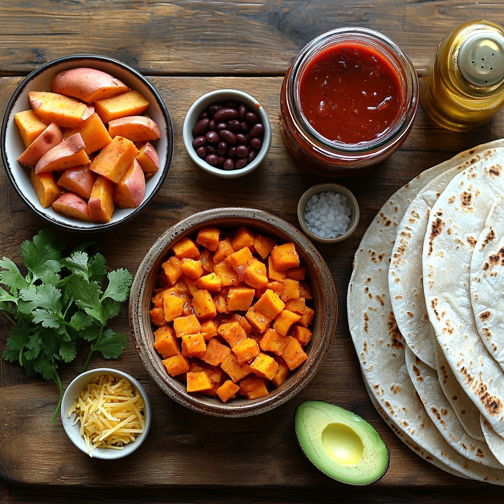 The magic of this Veggie Enchiladas with Sweet Potatoes, Black Beans, and Cheddar Recipe lies in its simple ingredients, each bringing a unique texture and burst of flavor that makes the dish memorable. From the naturally sweet and creamy sweet potatoes to the earthy black beans and zesty red enchilada sauce, every component works in harmony to create a wholesome and colorful feast.