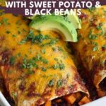 These Veggie Enchiladas are a hearty and flavorful vegetarian dish featuring sweet potatoes, black beans, brown rice, and a homemade red enchilada sauce, all wrapped in flour tortillas and baked with melted cheddar cheese. Topped with fresh avocado and cilantro, they make a perfect comforting meal for any occasion.